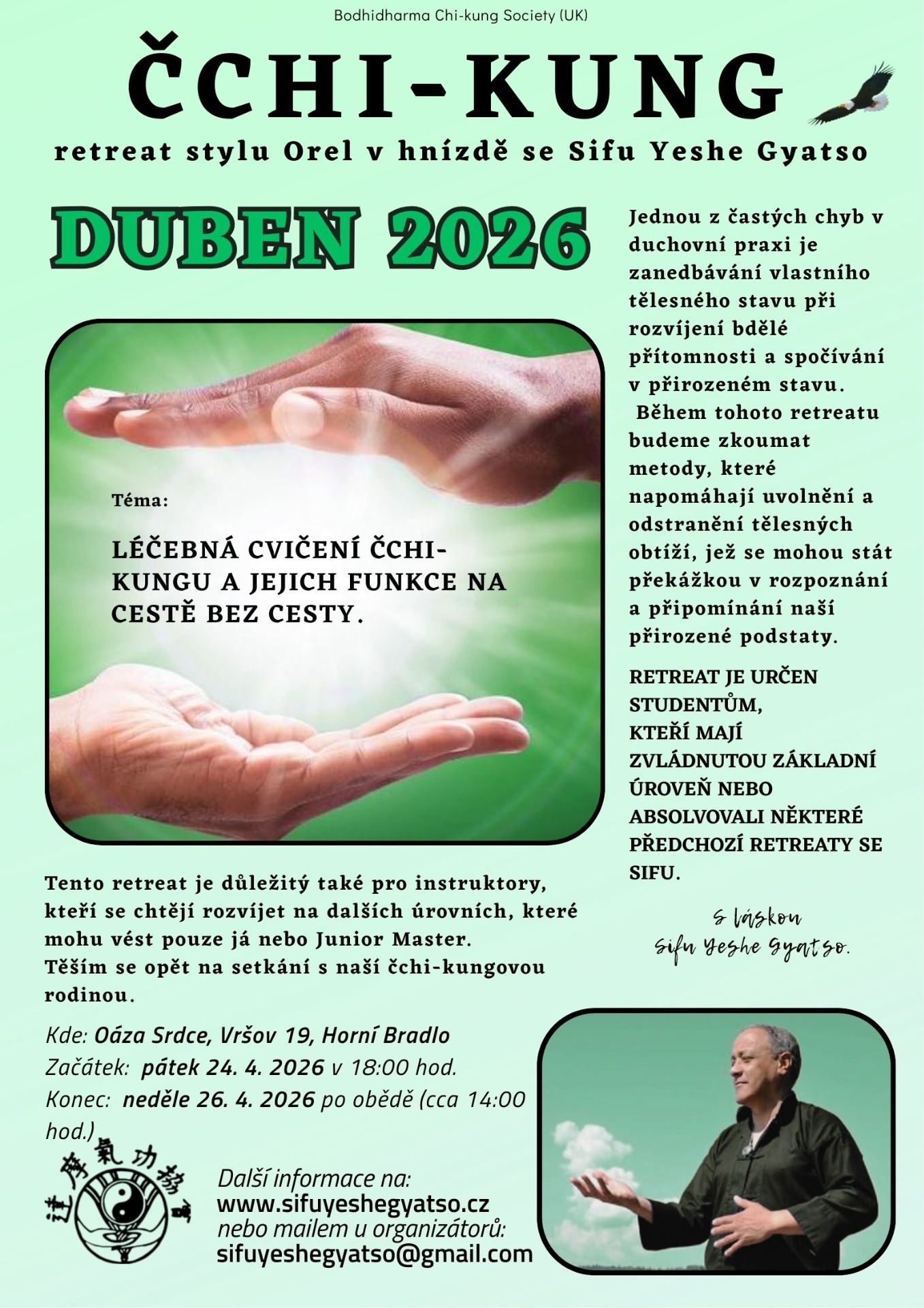Přijďte si s námi zacvičit čchi-kung Orel v hnízdě se Sifu Yeshe Gyatso pod jeho osobním vedením.